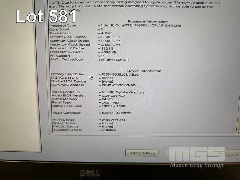 LAPTOP, DELL LATITUDE E7470, CORE i7 6600U (6TH GEN) @ 2.6GHz, 8GB DDR4 RAM, 256GB M.2 SSD, 14" WIDESCREEN (1920x1080), INTEL HD GRAPHICS 520, Wi-Fi, BLUETOOTH, WINDOWS 10 HOME INSTALLED, DOCKING STATION & POWER SUPPLY S/N:6J0SMC2