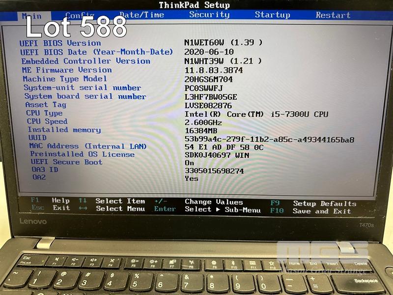 LAPTOP, LENOVO THINKPAD T470s, TYPE 20HG, CORE i5 7300U (7TH GEN) @ 2.6GHz, 16GB DDR4 RAM, 256GB NVMe M.2 SSD, 14" TOUCHSCREEN (1920x1080), INTEL HD VIDEO, Wi-Fi, BLUETOOTH, WINDOWS 10 PRO INSTALLED & POWER SUPPLY (NOTE: MARKS ON SCREEN) S/N:PC0SWWFJ