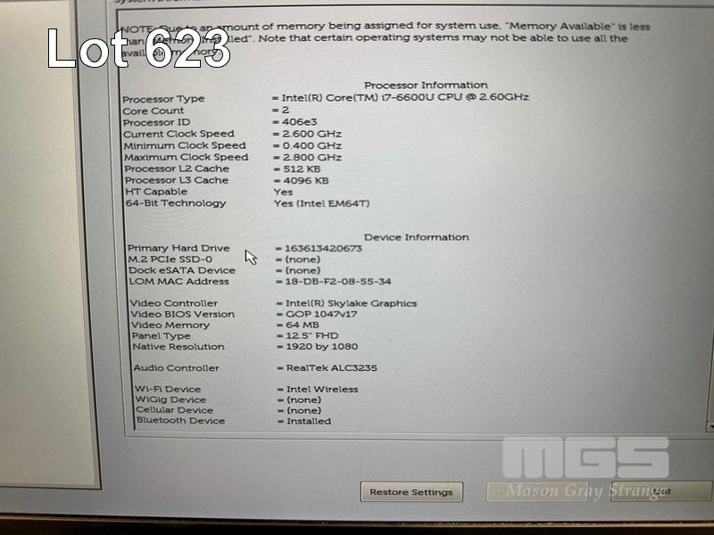 LAPTOP, DELL LATITUDE E7270, CORE i7 6600U (6TH GEN) @ 2.6GHz, 8GB DDR4 RAM, 256GB M.2 SSD, 12.5" WIDESCREEN (1920x1080), INTEL SKYLAKE GRAPHICS, Wi-Fi, BLUETOOTH, WINDOWS 10 HOME INSTALLED (NO POWER SUPPLY) (NOTE: MARKS ON SCREEN) S/N:FDP4PC2