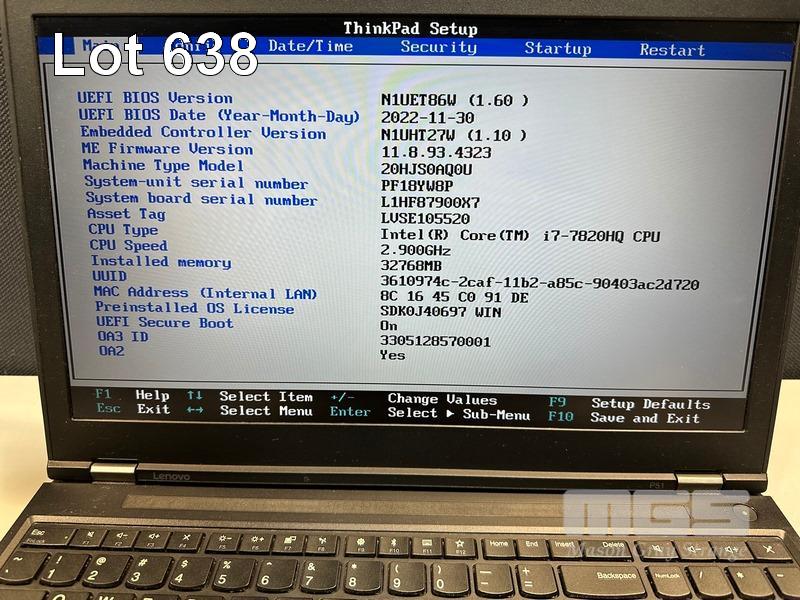 LAPTOP, LENOVO THINKPAD P51 MOBILE WORKSTATION, TYPE 20HJ, CORE i7 7820HQ (7TH GEN) @ 2.9GHz, 32GB DDR4 RAM, 512GB NVMe M.2 SSD, 15.6" WIDESCREEN (1920x1080), 4GB NVIDIA QUADRO M2200 VIDEO, Wi-Fi, BLUETOOTH, WINDOWS 10 PRO INSTALLED (NO POWER SUPPLY) (NOTE: MARKS ON SCREEN) S/N:PF18YW8P
