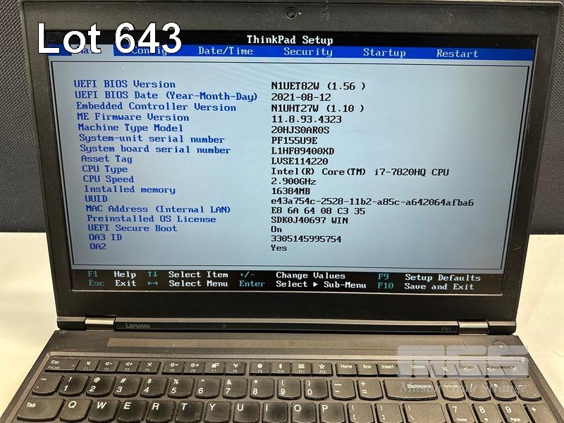 LAPTOP, LENOVO THINKPAD P51 MOBILE WORKSTATION, TYPE 20HJ, CORE i7 7820HQ (7TH GEN) @ 2.9GHz, 16GB DDR4 RAM, 512GB NVMe M.2 SSD, 15.6" WIDESCREEN (1920x1080), 4GB NVIDIA QUADRO M2200 VIDEO, Wi-Fi, BLUETOOTH, WINDOWS 10 PRO INSTALLED (NO POWER SUPPLY) (NOTE: MARKS ON SCREEN, MINOR CRACK LINE ON CASING) S/N:PF155U9E