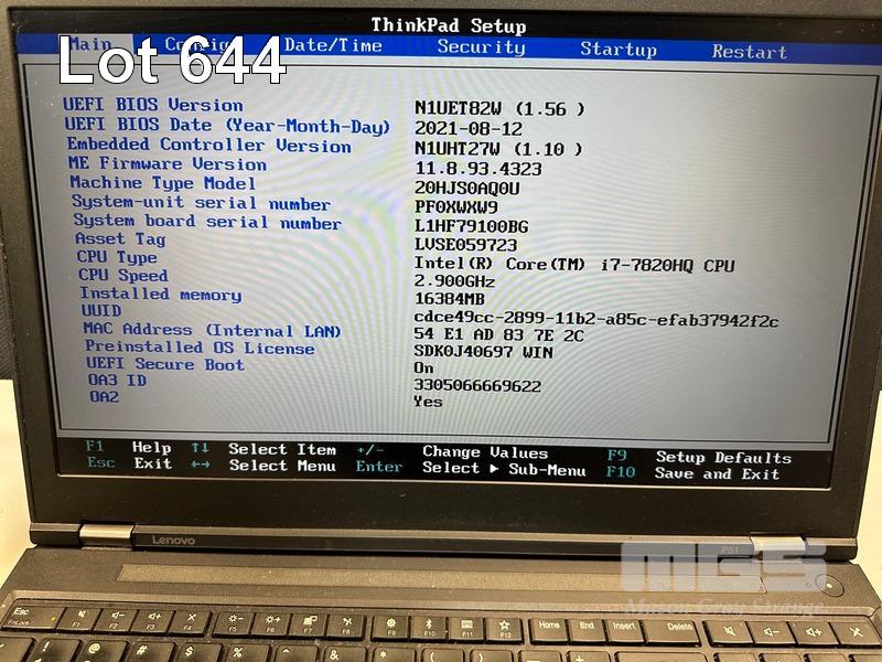LAPTOP, LENOVO THINKPAD P51 MOBILE WORKSTATION, TYPE 20HJ, CORE i7 7820HQ (7TH GEN) @ 2.9GHz, 16GB DDR4 RAM, 512GB NVMe M.2 SSD, 15.6" WIDESCREEN (1920x1080), 4GB NVIDIA QUADRO M2200 VIDEO, Wi-Fi, BLUETOOTH, WINDOWS 10 PRO INSTALLED (NO POWER SUPPLY) (NOTE: CRACK LINES ON CASING, MARKS ON SCREEN) S/N:PF0XWXW9