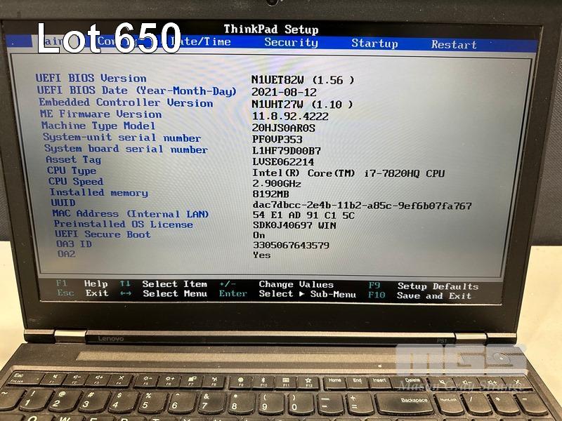 LAPTOP, LENOVO THINKPAD P51 MOBILE WORKSTATION, TYPE 20HJ, CORE i7 7820HQ (7TH GEN) @ 2.9GHz, 8GB DDR4 RAM, 512GB NVMe M.2 SSD, 15.6" WIDESCREEN (1920x1080), 4GB NVIDIA QUADRO M2200 VIDEO, Wi-Fi, BLUETOOTH, WINDOWS 10 PRO INSTALLED (NO POWER SUPPLY) (NOTE: MINOR DAMAGE TO CASING) S/N:PF0VP353