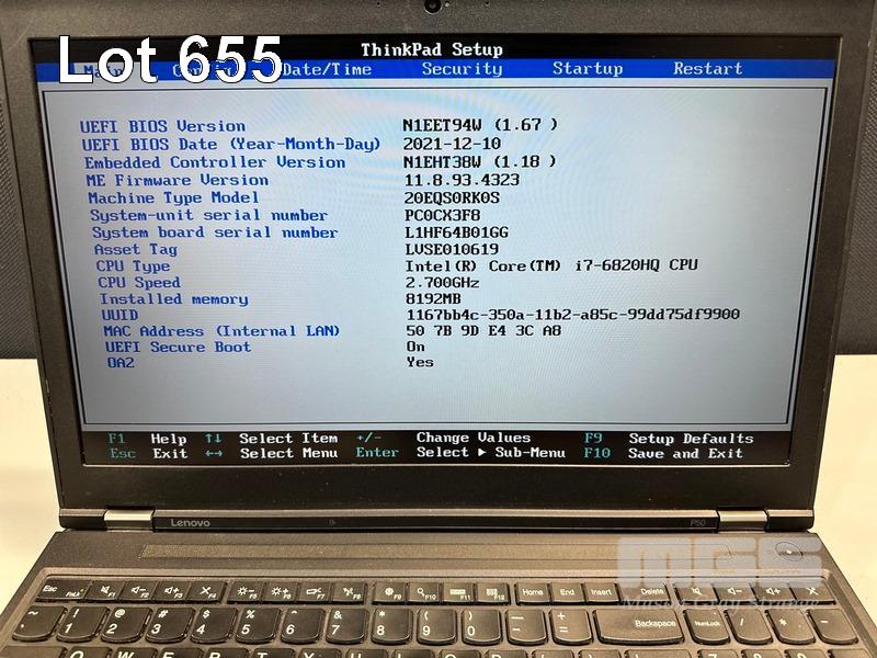 LAPTOP, LENOVO THINKPAD P50 MOBILE WORKSTATION, TYPE 20EQ, CORE i7 6820HQ (6TH GEN) @ 2.7GHz, 8GB DDR4 RAM, 256GB SSD, 15.6" WIDESCREEN (1920x1080), 4GB NVIDIA QUADRO M2000M VIDEO, Wi-Fi, BLUETOOTH, WINDOWS 10 PRO INSTALLED (NO POWER SUPPLY) (NOTE: MARKS & BRIGHT SPOTS ON SCREEN) S/N:PC0CX3F8