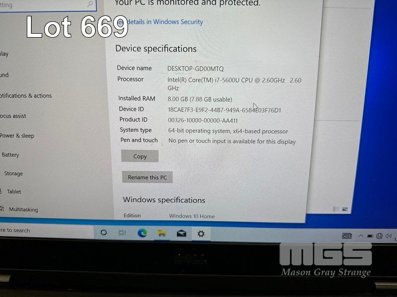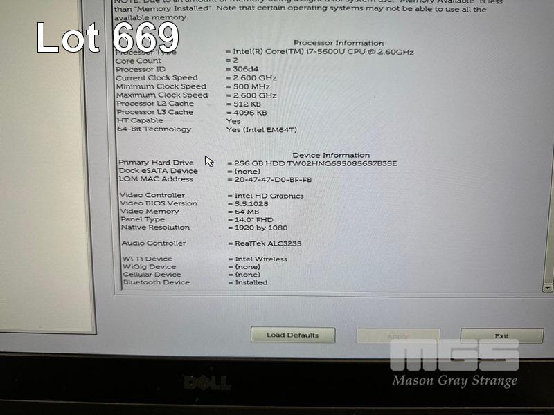 LAPTOP, DELL LATITUDE E7450, CORE i7 5600U (5TH GEN) @ 2.6GHz, 8GB DDR3 RAM, 256GB SSD, 14" WIDESCREEN (1920x1080), INTEL HD VIDEO, Wi-Fi, BLUETOOTH, WINDOWS 10 HOME INSTALLED (NO POWER SUPPLY) (NOTE: MINOR MARKS ON SCREEN, CASING EDGE WORN) S/N:C94BGC2