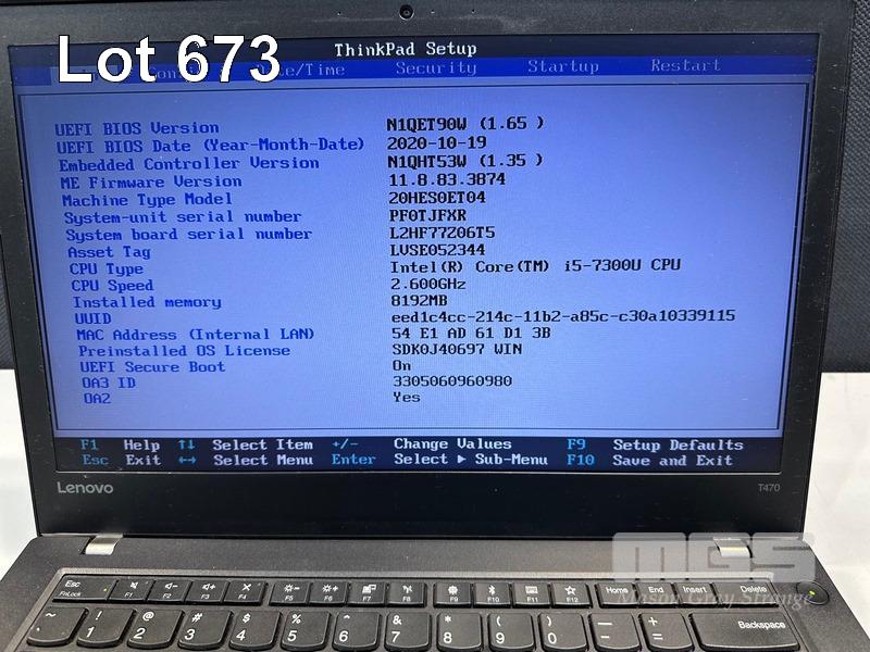 LAPTOP, LENOVO THINKPAD T470, TYPE 20HE, CORE i5 7300U (7TH GEN) @ 2.6GHz, 8GB DDR4 RAM, 256GB NVMe M.2 SSD, 14" WIDESCREEN (1366x768), INTEL HD VIDEO, Wi-Fi, BLUETOOTH, WINDOWS 10 PRO INSTALLED & POWER SUPPLY (NOTE: MINOR MARKS ON SCREEN) S/N:PF0TJFXR