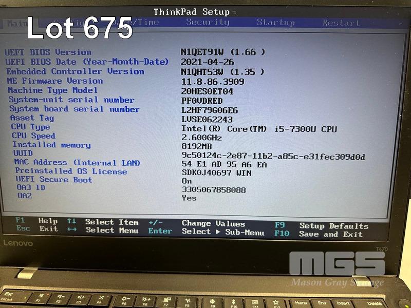 LAPTOP, LENOVO THINKPAD T470, TYPE 20HE, CORE i5 7300U (7TH GEN) @ 2.6GHz, 8GB DDR4 RAM, 256GB NVMe M.2 SSD, 14" WIDESCREEN (1366x768), INTEL HD VIDEO, Wi-Fi, BLUETOOTH, WINDOWS 10 PRO INSTALLED & POWER SUPPLY (NOTE: MINOR MARKS ON SCREEN) S/N:PF0VDRED