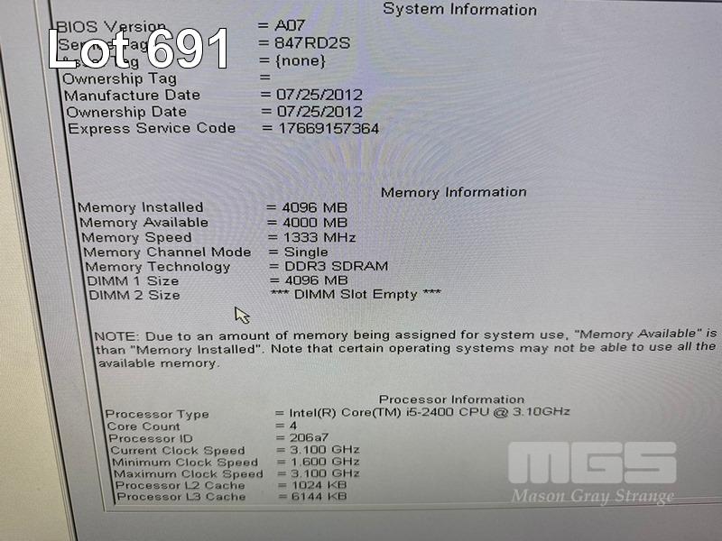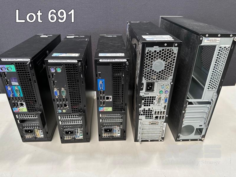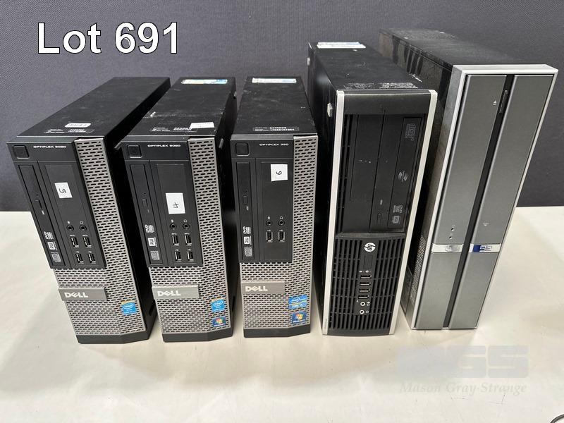 4 x DESKTOP PCS & 1 x EMPTY ASUS PC BAREBONE CASE (P3-P5G33) INC. - DELL OPTIPLEX 9020 SFF, CORE i5 4570 @ 3.2GHz, 8GB RAM, 120GB SSD, WINDOWS 10 PRO INSTALLED - DELL OPTIPLEX 9020 SFF, CORE i5 4570 @ 3.2GHz, 4GB RAM, 500GB SATA HDD, WINDOWS 10 HOME INSTALLED - DELL OPTIPLEX 390 SFF, CORE i5 2400 @ 3.1GHz, 4GB RAM, NO HDD - HP COMPAQ 8200 ELITE SFF, CORE i5 2400 @ 3.1GHz, 4GB RAM, 250GB SATA HDD, WINDOWS 10 PRO INSTALLED (NO CABLES) S/N:7186F02, DSWQQ12, 847RD2S, AUD12401FJ