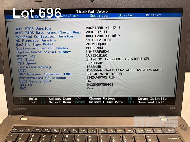 LAPTOP, LENOVO THINKPAD T460, TYPE 20FM, CORE i5 6300U (6TH GEN) @ 2.4GHz, 16GB DDR3 RAM, 256GB SSD, 14" WIDESCREEN (1920x1080), INTEL HD VIDEO, Wi-Fi, BLUETOOTH, WINDOWS 10 PRO INSTALLED & POWER SUPPLY (NOTE: BRIGHT SPOTS ON SCREEN) S/N:PC0EZMHJ