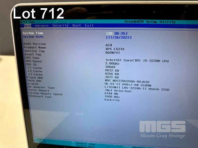 LAPTOP, DELL XPS L521X, CORE i5 3230M (3RD GEN) @ 2.6GHz, 6GB DDR3 RAM, 120GB SSD, DVD--RW, 15.6" WIDESCREEN, 1GB NVIDIA GEFORCE GT 630M VIDEO, Wi-Fi, BLUETOOTH, WINDOWS 10 PRO INSTALLED & POWER SUPPLY S/N:6QYNTY1