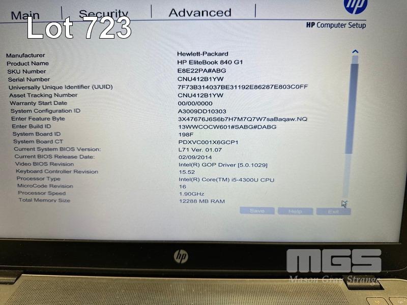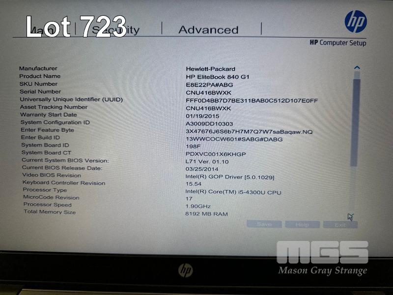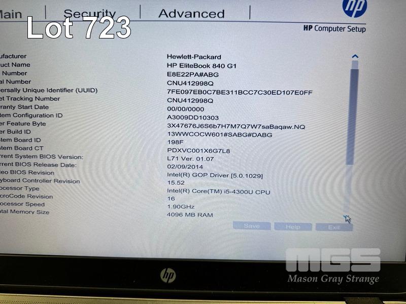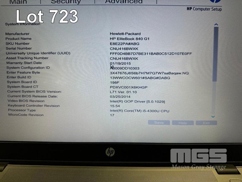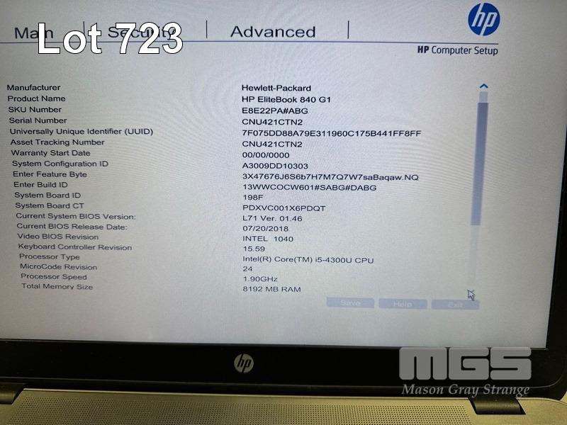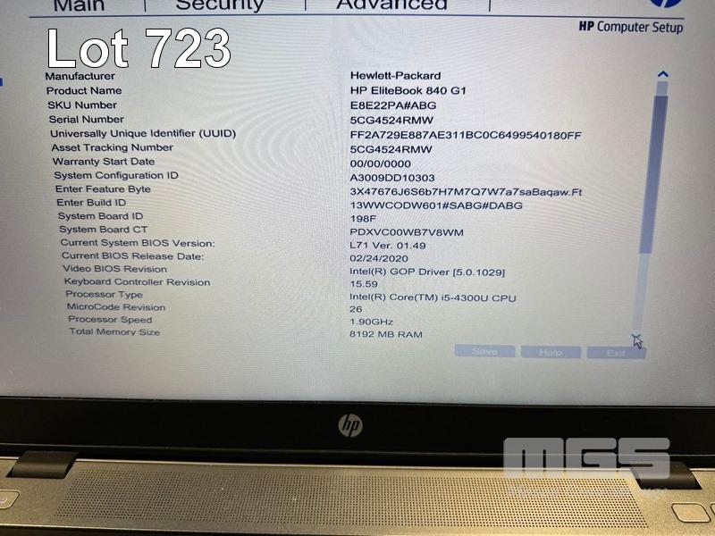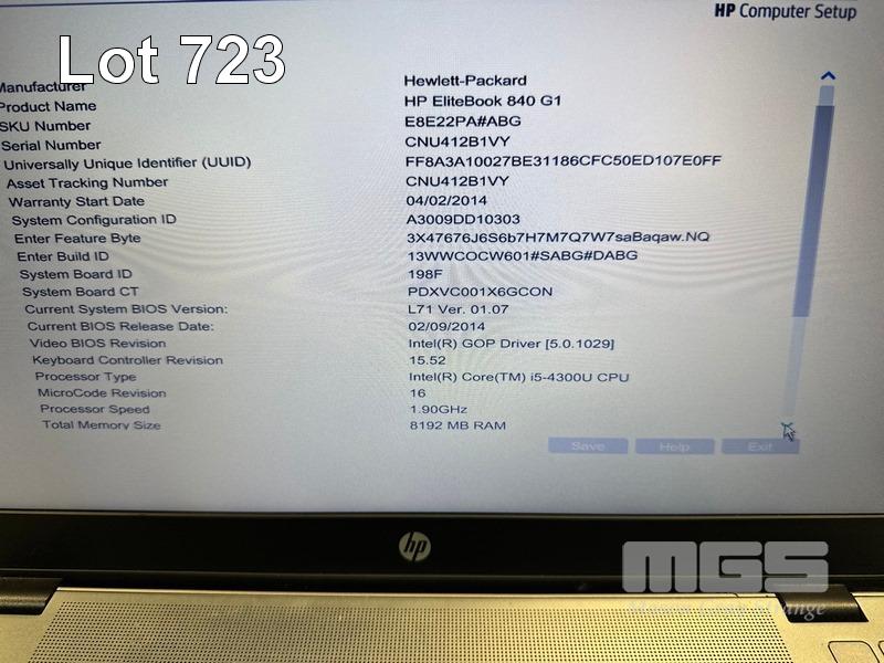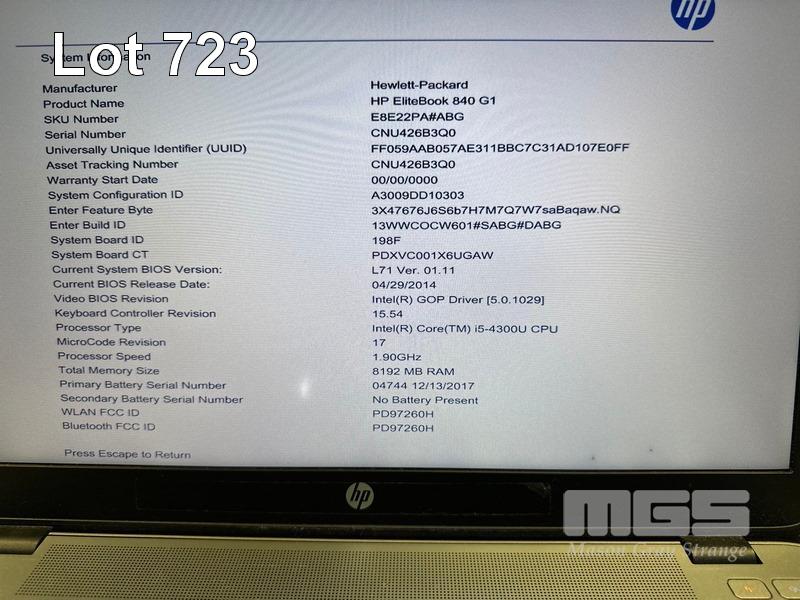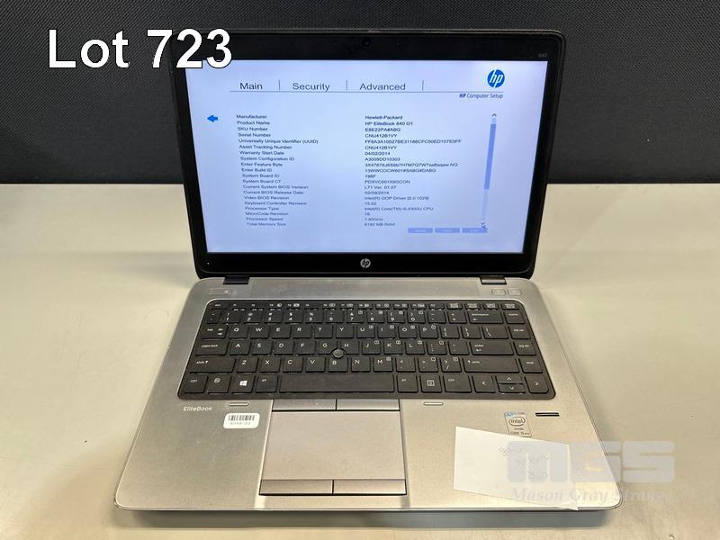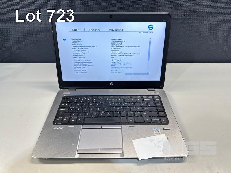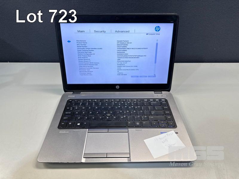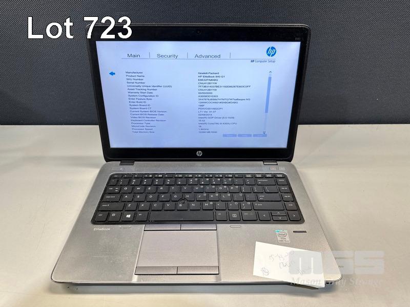 7 x LAPTOPS INC. - 4 x HP ELITEBOOK 840 G1, CORE i5 4300U (4TH GEN) @ 1.9GHz, 8GB DDR3 RAM, NO HDD - 1 x HP ELITEBOOK 840 G1, CORE i5 4300U (4TH GEN) @ 1.9GHz, 8GB DDR3 RAM, NO HDD (NOTE: BIOS PASSWORD PROTECTED, BRIGHT SPOT ON SCREEN) - 1 x HP ELITEBOOK 840 G1, CORE i5 4300U (4TH GEN) @ 1.9GHz, 4GB DDR3 RAM, NO HDD - 1 x HP ELITEBOOK 840 G1, CORE i5 4300U (4TH GEN) @ 1.9GHz, 12GB DDR3 RAM, NO HDD (NO POWER SUPPLIES) S/N:CNU412B1VY, 5CG4524RMW, CNU421CTN2, CNU426B3Q0, CNU416BWXK, CNU412998Q, CNU412B1YW