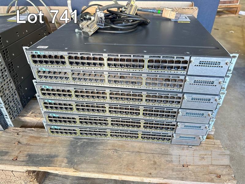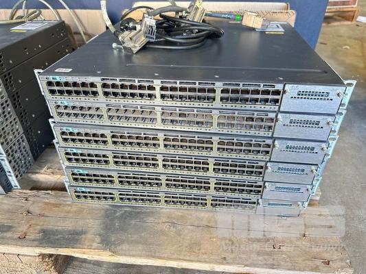 6 x CISCO CATALYST 3750-X SERIES 48-PORT SWITCHES, WS-C3750X-48P-S V03 EACH WITH STACK CABLES & IEC-C15 NOTCH POWER CABLES S/N:FDO1635R0Y1, FDO1635P0S1, FDO1630V0SF, FDO1618Z0VE, FDO1635R0Y0, FDO1631R189