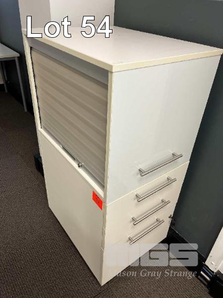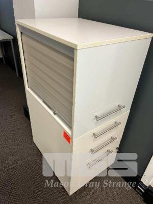 MOBILE OFFICE STORAGE CABINET, 3 DRAWER WITH SIDE ACCESS ROLLING TAMBOUR DOOR