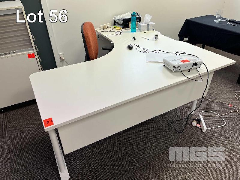 TIMBER LAMINATE CORNER DESK, STEEL FRAME 1800 x 1800mm WITH GASLIFT OFFICE CHAIR (LOCATED ON 7TH FLOOR)