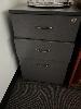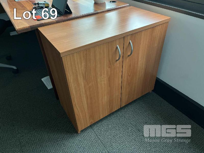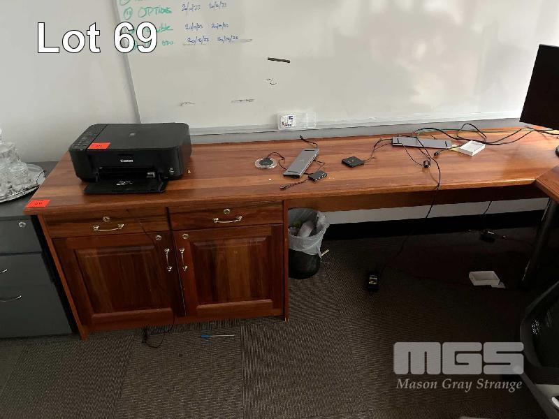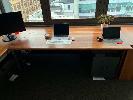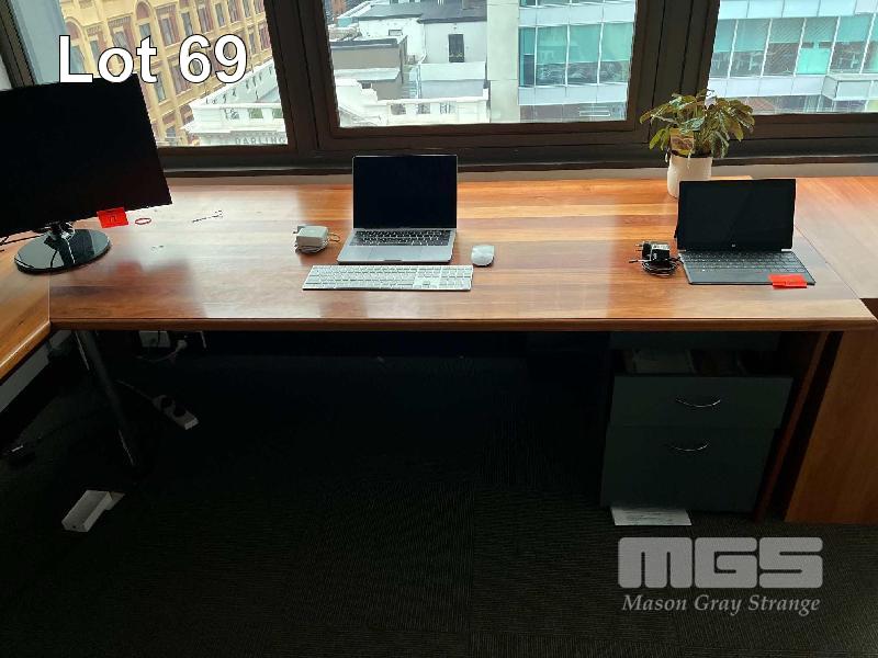SOLID TIMBER EXECUTIVE DESK, L SHAPE, 2800 x 3000mm, 2 x DRAWERS, 2 x CUPBOARD DOORS, WITH PAIR OF 3 DRAWER UNDER DESK MOBILES, HIGH BACK GAS LIFT OFFICE CHAIR (LOCATED ON 7th FLOOR)