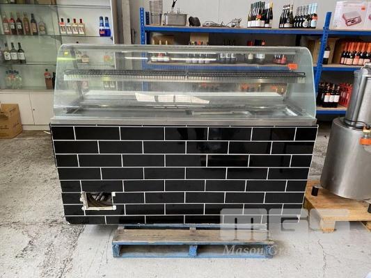 BOW GLASS COLD FOOD DISPLAY/PREP FRIDGE 180cm, 2 DOOR, STAINLESS STEEL CASED, 240V, TILED FASCIA
