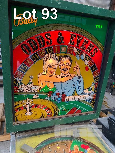 PINBALL MACHINE, ODDS & EVENS COIN OP, LIGHTS UP AND PLAYS, FLIPPERS AND BOUNCERS WORKING, SCORE BOARD COUNTER WORKS. 110v WITH POWER SUPPLY (NOTE : BACK COVER MISSING)
