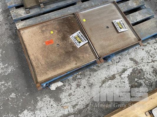 2 x BBQ HOT PLATES, CAST IRON, 475 x 485mm & 395 x 485mm