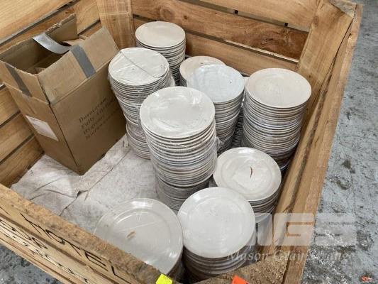LARGE QUANTITY ASSORTED WHITE PLATES NOT INCLUDING CRATE, CONTENTS ONLY