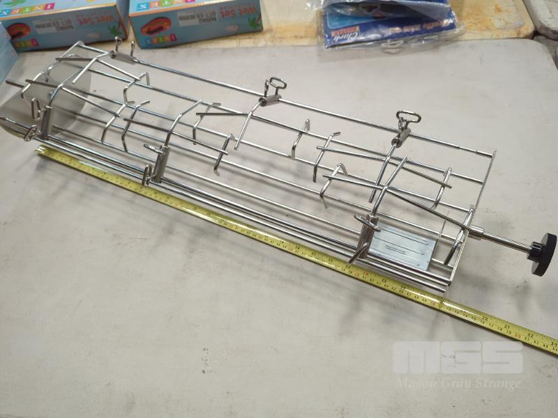EZQ EIGHT INCH ROTISSERIE CRADLE - LARGE (28 INCH LONG) 28 X 8" STAINLESS STEEL ROTISSERIE CRADLE, HANDLE, CLAW CLAMPS & CLAWS. * E-Z QUE ROTISSERIE BASKET SYSTEM * * NO MOTOR * ORP $399.00
