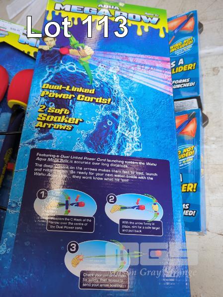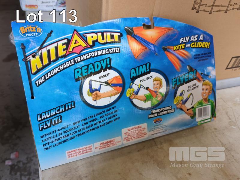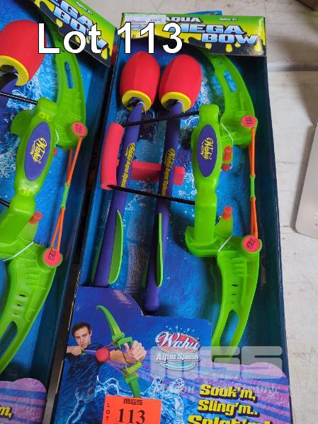 LAUCHING TOYS. 8 X AQUA MEGA BOW TOYS AND 2 X "KITE-A-PULT" TOYS ALL NEW IN ORIGNIAL PACKAGING