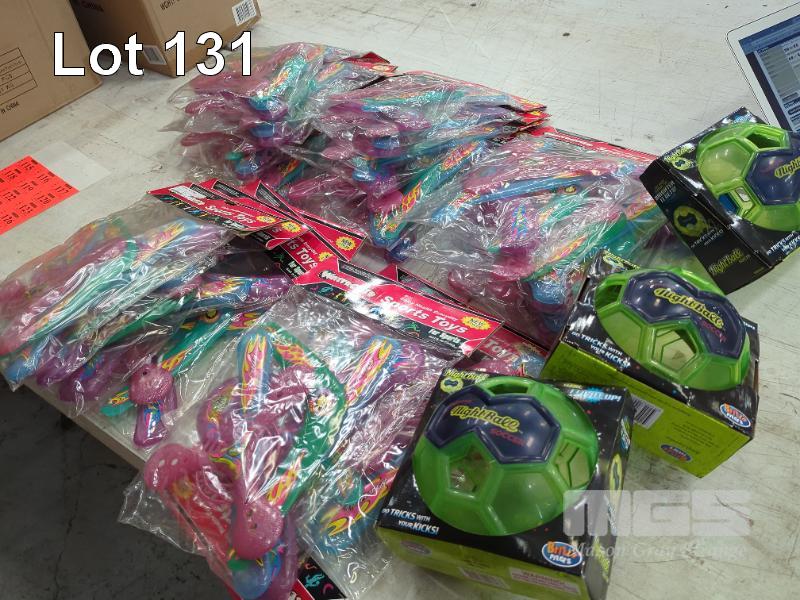 22 X PACKS OF MIXED THROWING TOYS (4 PER PACK). 3 X GLOW IN THE DARK "NIGHT BALLS"