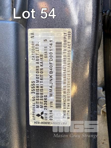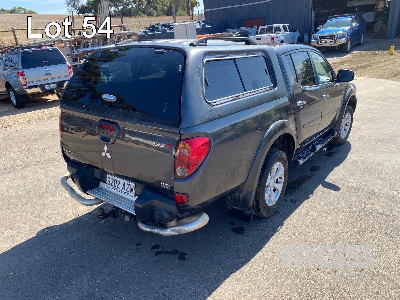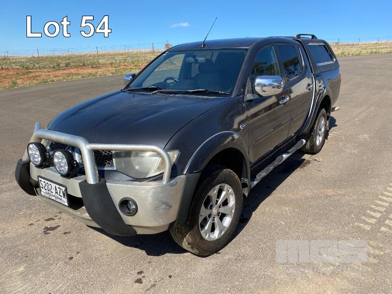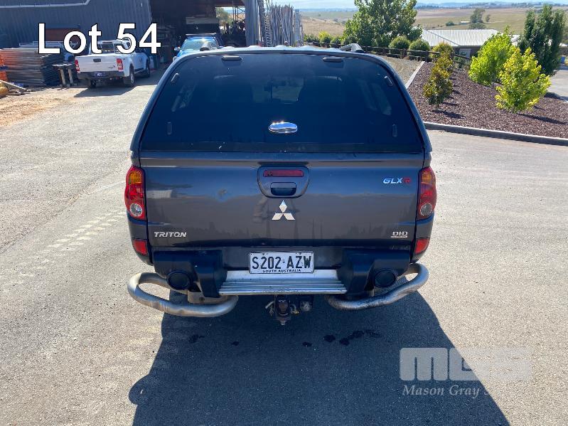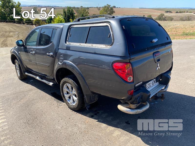 2014 MITSUBISHI TRITON GLX-R DUAL CAB UTE 4X4 REG: S202 AZW (SA) VIN: MMAJNKB40FD001141 ODO: 293,043kms SHOWING MANUAL, TURBO DIESEL, GUNMETAL GREY DUCO, 4 DOORS, 5 SEAT, 4X4 ABS, AIR BAG, AIR CON, ALLOY WHEELS, BULL BAR, CANOPY, CENTRAL LOCKING, POWER WINDOWS, SIDE STEP, SPOT LIGHTS, TOW BAR, TITAN 2 DRAWER TOOL BOX NOTE: FADED PAINT, CRACKED TAIL LIGHT, GENERAL WEAR & TEAR (WITH PAPERS)