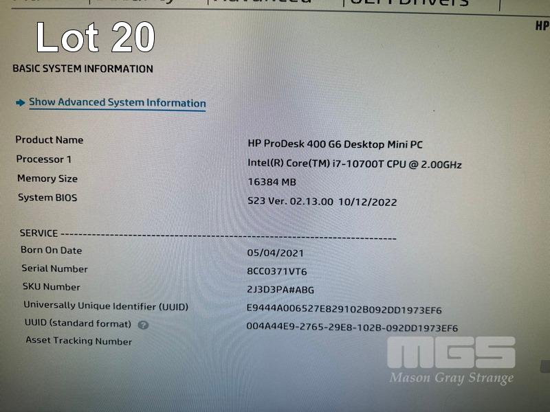 DESKTOP PC, HP PRODESK 400 G6 MINI (2J3D3PA), CORE i7 10700T (10TH GEN) @ 2GHz, 16GB DDR4 RAM, 512GB NVMe M.2 SSD, INTEL UHD GRAPHICS 630, Wi-Fi, BLUETOOTH, WINDOWS 11 PRO INSTALLED & POWER SUPPLY (NO KEYBOARD, NO MOUSE) S/N:8CC0371VT6