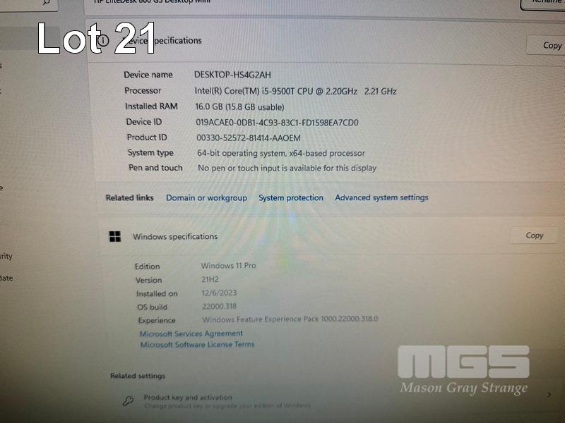 DESKTOP PC, HP ELITEDESK 800 G5 MINI, CORE i5 9500T (9TH GEN) @ 2.2GHz, 16GB DDR4 RAM, 256GB NVMe M.2 SSD, INTEL UHD GRAPHICS 630, Wi-Fi, BLUETOOTH, WINDOWS 11 PRO INSTALLED & POWER SUPPLY (NO KEYBOARD, NO MOUSE) S/N:8CC0035B19