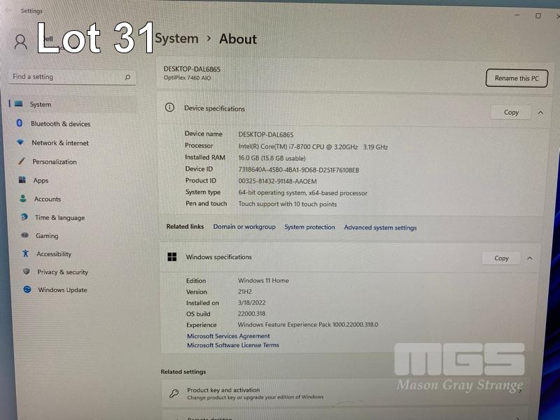ALL-IN-ONE PC, DELL OPTIPLEX 7460, CORE i7 8700 (8TH GEN) @ 3.2GHz, 16GB DDR4 RAM, 512GB NVMe M.2 SSD, INBUILT 23.8" FHD TOUCHSCREEN (1920x1080), INTEL HD VIDEO, WEBCAM, 5 x USB, 1 x USB-C, WINDOWS 11 HOME INSTALLED, KEYBOARD & MOUSE S/N:FCDBHY2