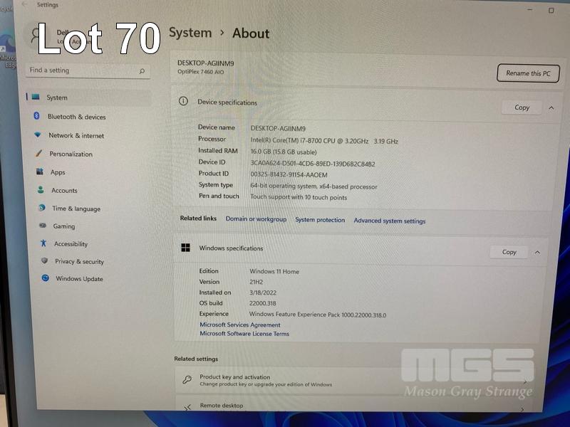 ALL-IN-ONE PC, DELL OPTIPLEX 7460, CORE i7 8700 (8TH GEN) @ 3.2GHz, 16GB DDR4 RAM, 512GB NVMe M.2 SSD, INBUILT 23.8" FHD TOUCHSCREEN (1920x1080), INTEL HD VIDEO, WEBCAM, 5 x USB, 1 x USB-C, WINDOWS 11 HOME INSTALLED, KEYBOARD & MOUSE S/N:FCK8HY2
