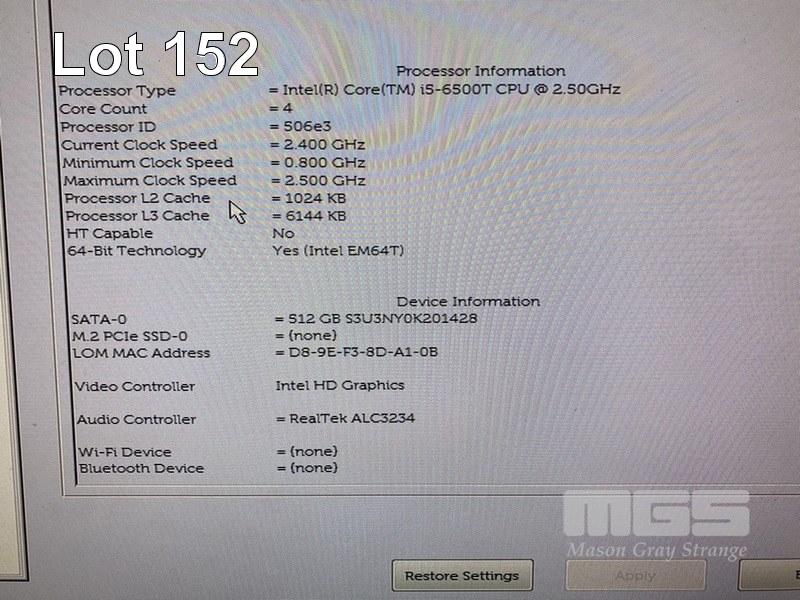 DESKTOP PC, DELL OPTIPLEX 3050 MICRO, CORE i5 6500T (6TH GEN) @ 2.5GHz, 8GB DDR4 RAM, 512GB SSD, INTEL HD VIDEO, 6 x USB, WINDOWS 10 HOME INSTALLED & POWER SUPPLY (65W) (NO KEYBOARD, NO MOUSE) S/N:G37S9P2