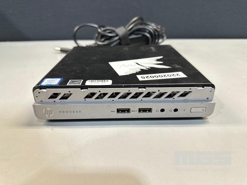 DESKTOP PC, HP PRODESK 400 G4 DM MINI, CORE i7 8700T (8TH GEN) @ 2.4GHz, 16GB DDR4 RAM, 256GB M.2 SSD, WINDOWS 11 PRO INSTALLED & POWER SUPPLY (65W) (NO KEYBOARD, NO MOUSE) (NOTE: DAMAGED CASING) S/N:8CC9513N0C