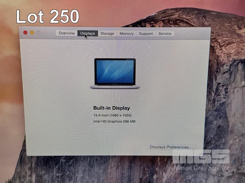 LAPTOP, APPLE MACBOOK PRO (A1286), CORE i7 620M @ 2.66GHz, 8GB DDR3 RAM, 500GB SATA HDD, DVD-RW, 15.4" WIDESCREEN (1680x1050), INTEL HD GRAPHICS, Wi-Fi, BLUETOOTH, MAC OS 10.10 INSTALLED & POWER SUPPLY (NOTE: MINOR MARKS ON SCREEN) S/N:W80393R9AGZ