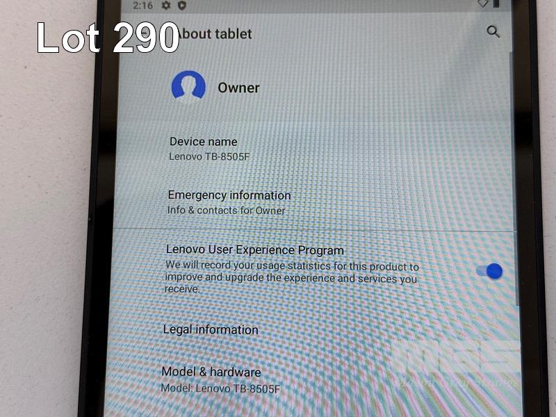 TABLET PC, LENOVO TAB M8, MODEL TB-8505F, 32GB, 8" SCREEN WITH USB CABLE (NO CHARGER)