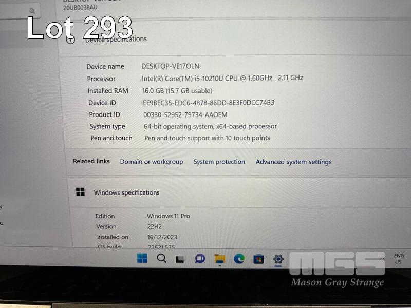 LAPTOP, LENOVO THINKPAD X1 YOGA, TYPE 20UB, CORE i5 10210U (10TH GEN) @ 1.6GHz, 16GB RAM, 256GB NVMe M.2 SSD, 14" TOUCHSCREEN (1920x1080), INTEL UHD GRAPHICS, Wi-Fi, BLUETOOTH, STYLUS, WINDOWS 11 PRO INSTALLED & USB-C POWER SUPPLY (NOTE: MINOR MARKS ON SCREEN) S/N:PF288NXP