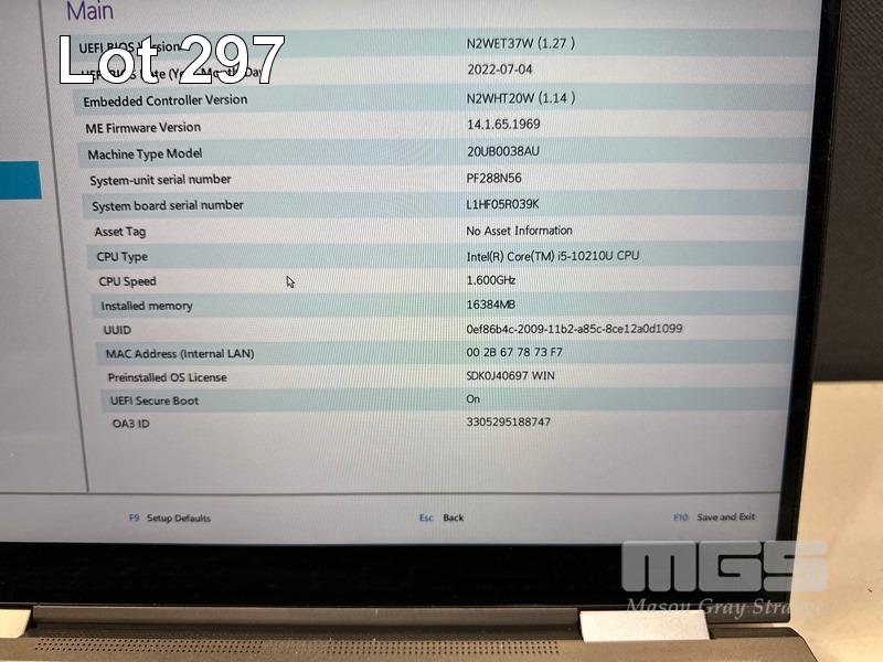 LAPTOP, LENOVO THINKPAD X1 YOGA, TYPE 20UB, CORE i5 10210U (10TH GEN) @ 1.6GHz, 16GB RAM, 256GB NVMe M.2 SSD, 14" TOUCHSCREEN (1920x1080), INTEL UHD GRAPHICS, Wi-Fi, BLUETOOTH, STYLUS, WINDOWS 11 PRO INSTALLED & USB-C POWER SUPPLY (NOTE: MINOR MARKS ON SCREEN) S/N:PF288N56