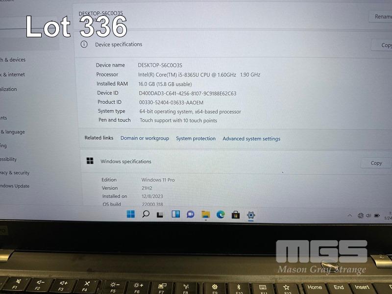 LAPTOP, LENOVO THINKPAD T490s, TYPE 20NY, CORE i5 8365U (8TH GEN) @ 1.6GHz, 16GB DDR4 RAM, 256GB NVMe M.2 SSD, 14" TOUCHSCREEN (1920x1080), INTEL HD VIDEO, Wi-Fi, BLUETOOTH, WINDOWS 11 PRO INSTALLED & USB-C POWER SUPPLY (NOTE: MINOR MARKS ON SCREEN) S/N:PC1B4SWW