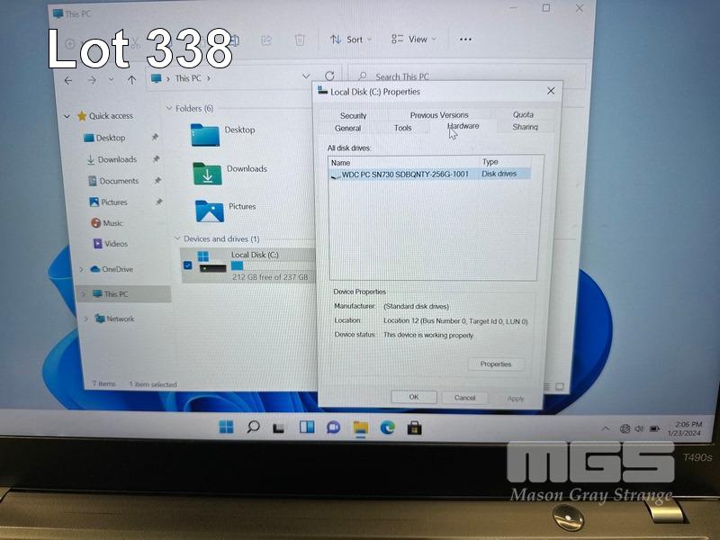 LAPTOP, LENOVO THINKPAD T490s, TYPE 20NY, CORE i5 8365U (8TH GEN) @ 1.6GHz, 16GB DDR4 RAM, 256GB NVMe M.2 SSD, 14" TOUCHSCREEN (1920x1080), INTEL HD VIDEO, Wi-Fi, BLUETOOTH, WINDOWS 11 PRO INSTALLED & USB-C POWER SUPPLY (NOTE: MARKS ON SCREEN) S/N:PC1BCQSH