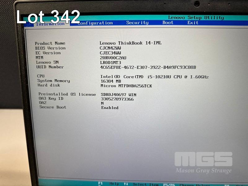 LAPTOP, LENOVO THINKBOOK 14-IML, TYPE 20RV, CORE i5 10210U (10TH GEN) @ 1.6GHz, 16GB RAM, 256GB NVMe M.2 SSD, 14" WIDESCREEN (1920x1080), INTEL UHD GRAPHICS, Wi-Fi, BLUETOOTH, WINDOWS 11 PRO INSTALLED & POWER SUPPLY (NOTE: MINOR MARKS ON SCREEN) S/N:LR0D1MT3