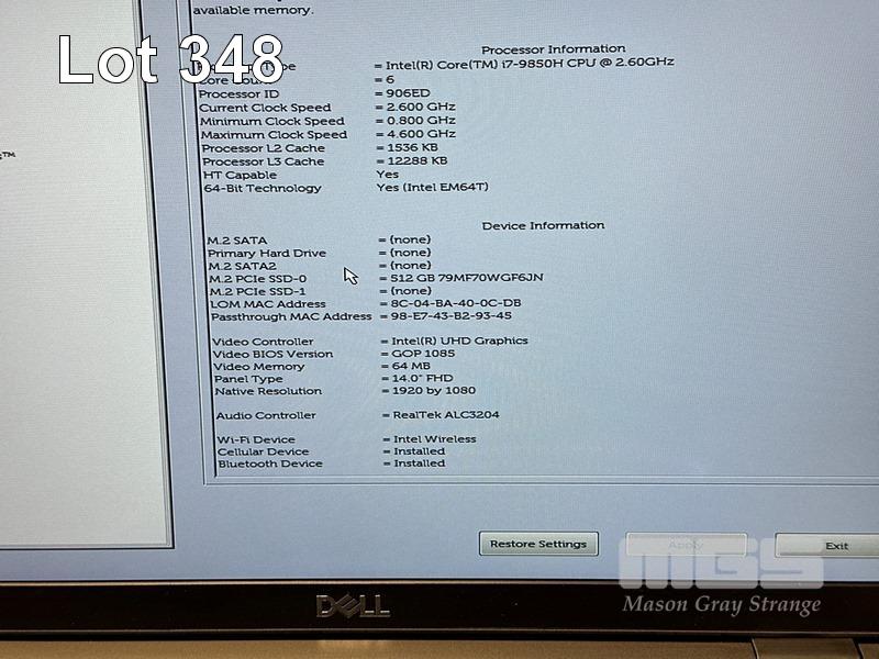 LAPTOP, DELL LATITUDE 5401, CORE i7 9850H (9TH GEN) @ 2.6GHz, 32GB DDR4 RAM, 512GB NVMe M.2 SSD, 14" WIDESCREEN (1920x1080), 2GB NVIDIA GEFORCE MX150 VIDEO, INTEL UHD GRAPHICS 630, Wi-Fi, CELLULAR, BLUETOOTH, WINDOWS 11 PRO INSTALLED (NO POWER SUPPLY) S/N:CRRSZY2
