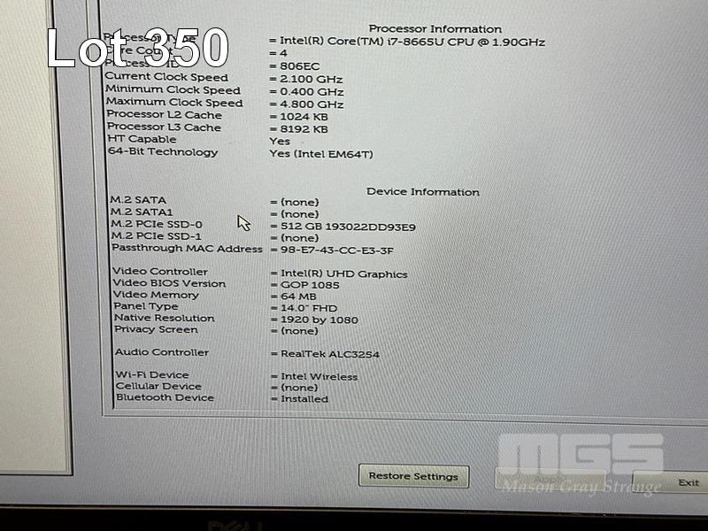 LAPTOP, DELL LATITUDE 7400, CORE i7 8665U (8TH GEN) @ 1.9GHz, 16GB DDR4 RAM, 512GB NVMe M.2 SSD, 14" WIDESCREEN (1920x1080), INTEL UHD GRAPHICS 620, Wi-Fi, BLUETOOTH, WINDOWS 11 HOME INSTALLED & POWER SUPPLY S/N:FF5D2Z2