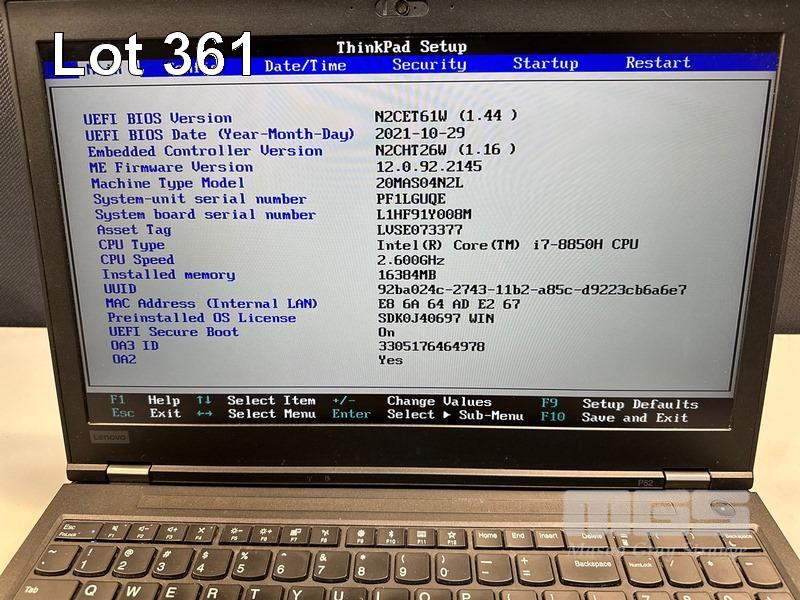 LAPTOP, LENOVO THINKPAD P52 MOBILE WORKSTATION, TYPE 20MA, CORE i7 8850H (8TH GEN) @ 2.6GHz, 16GB DDR4 RAM, 512GB NVMe M.2 SSD, 15.6" WIDESCREEN (1920x1080), 4GB NVIDIA QUADRO P2000 VIDEO, Wi-Fi, BLUETOOTH, WINDOWS 11 PRO INSTALLED & POWER SUPPLY (NOTE: MINOR MARKS ON SCREEN) S/N:PF1LGUQE