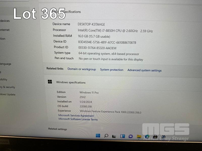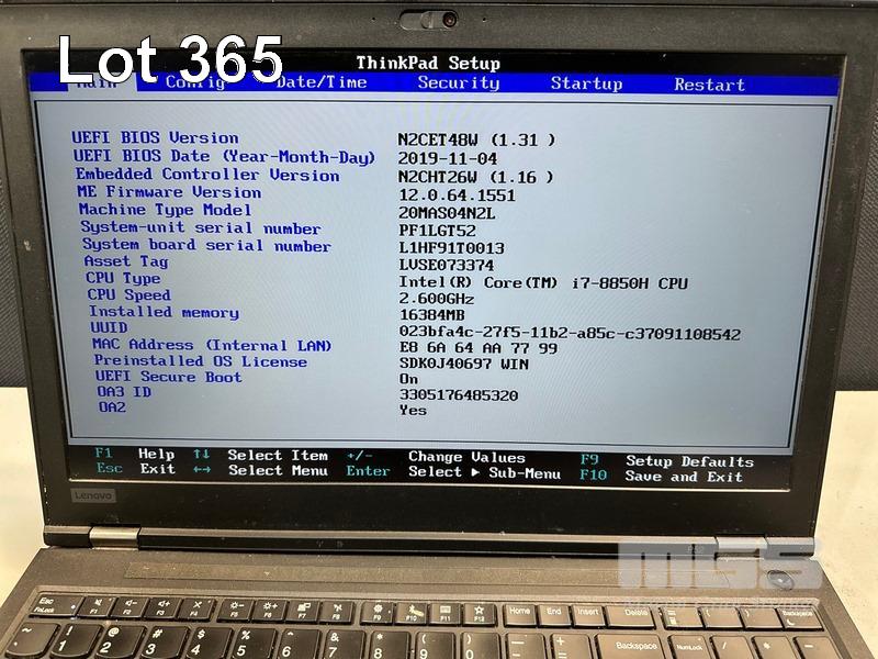 LAPTOP, LENOVO THINKPAD P52 MOBILE WORKSTATION, TYPE 20MA, CORE i7 8850H (8TH GEN) @ 2.6GHz, 16GB DDR4 RAM, 512GB NVMe M.2 SSD, 15.6" WIDESCREEN (1920x1080), 4GB NVIDIA QUADRO P2000 VIDEO, Wi-Fi, BLUETOOTH, WINDOWS 11 PRO INSTALLED (NO POWER SUPPLY) (NOTE: LEFT MOUSE BUTTON FAULTY, MARKS ON SCREEN) S/N:PF1LGT52