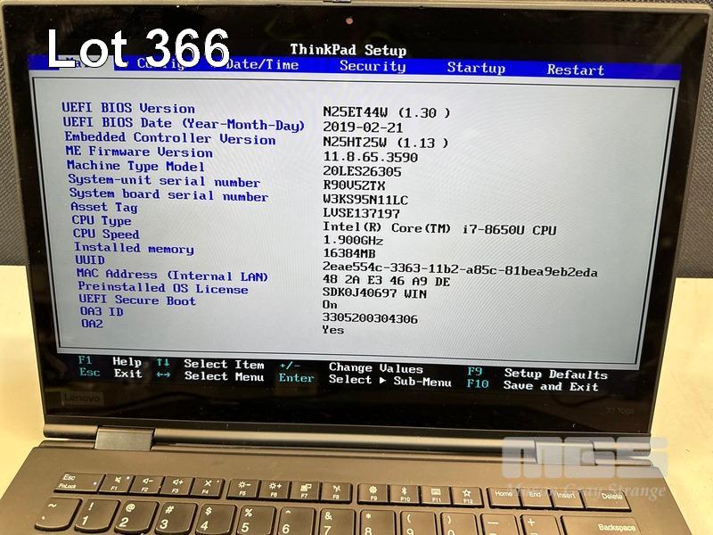 LAPTOP, LENOVO THINKPAD X1 YOGA, TYPE 20LE, CORE i7 8650U (8TH GEN) @ 1.9GHz, 16GB DDR4 RAM, 512GB NVMe M.2 SSD, 14" TOUCHSCREEN (1920x1080), INTEL UHD GRAPHICS, Wi-Fi, BLUETOOTH, WINDOWS 11 PRO INSTALLED (NO USB-C POWER SUPPLY) (NOTE: NO BATTERY, MARKS ON SCREEN, NO STYLUS) S/N:R90V5ZTX