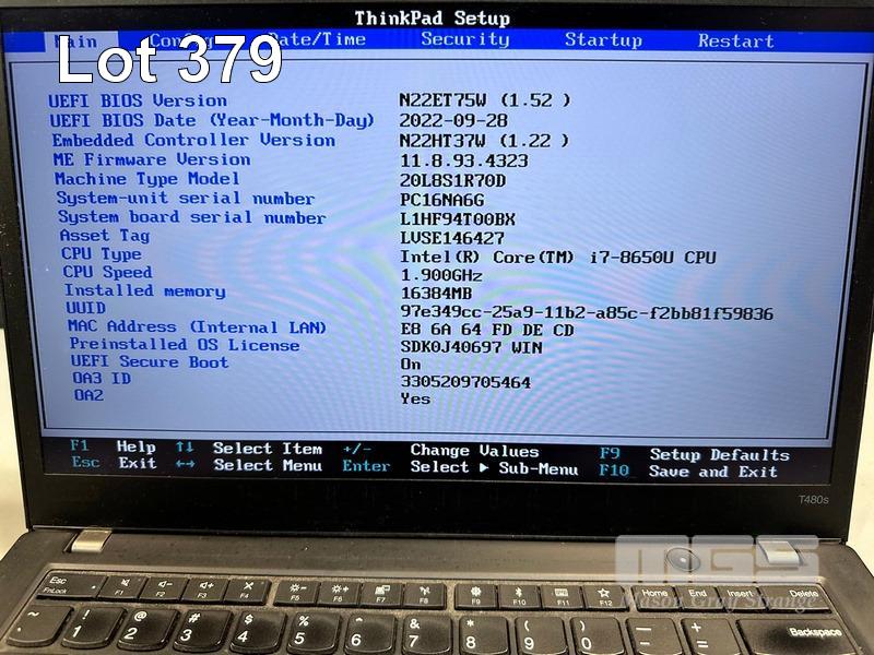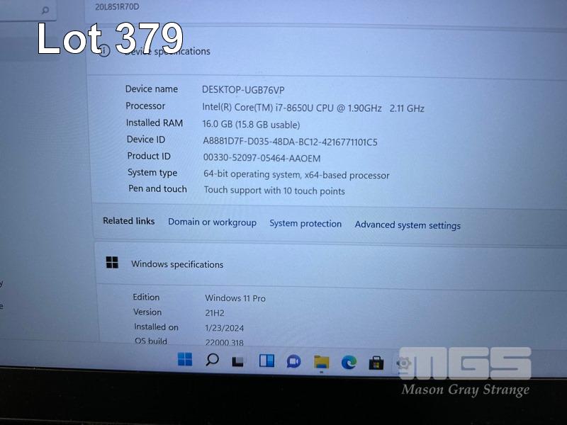 LAPTOP, LENOVO THINKPAD T480s, TYPE 20L8, CORE i7 8650U (8TH GEN) @ 1.9GHz, 16GB DDR4 RAM, 512GB NVMe M.2 SSD, 14" TOUCHSCREEN (1920x1080), INTEL HD VIDEO, Wi-Fi, BLUETOOTH, WINDOWS 11 PRO INSTALLED (NO USB-C POWER SUPPLY) (NOTE: MARKS ON SCREEN) S/N:PC16NA6G