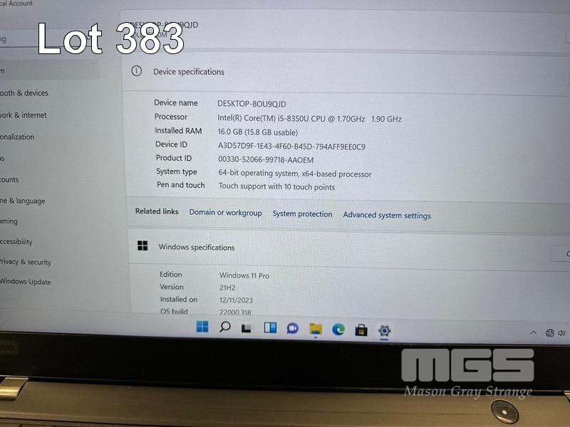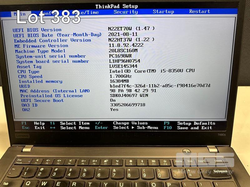 LAPTOP, LENOVO THINKPAD T480s, TYPE 20L8, CORE i5 8350U (8TH GEN) @ 1.7GHz, 16GB DDR4 RAM, 256GB NVMe M.2 SSD, 14" TOUCHSCREEN (1920x1080), INTEL HD VIDEO, Wi-Fi, BLUETOOTH, WINDOWS 11 PRO INSTALLED (NO USB-C POWER SUPPLY) (NOTE: MINOR MARKS ON SCREEN) S/N:PC1698WR