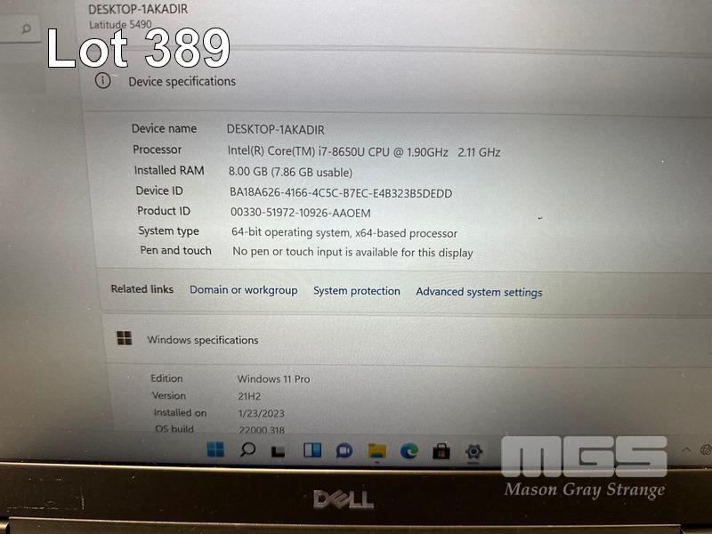 LAPTOP, DELL LATITUDE 5490, CORE i7 8650U (8TH GEN) @ 1.9GHz, 8GB DDR4 RAM, 256GB NVMe M.2 SSD, 14" WIDESCREEN (1920x1080), 2GB NVIDIA GEFORCE MX130 VIDEO, INTEL UHD GRAPHICS 620, Wi-Fi, CELLULAR, BLUETOOTH, WINDOWS 11 PRO INSTALLED (NO POWER SUPPLY) S/N:3T2KRV2