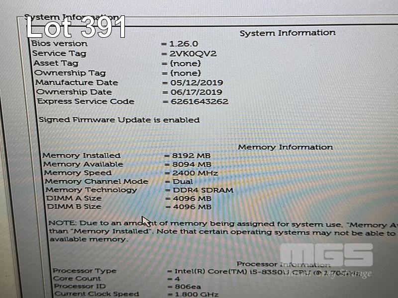 LAPTOP, DELL LATITUDE 5490, CORE i5 8350U (8TH GEN) @ 1.7GHz, 8GB DDR4 RAM, 256GB M.2 SSD, 14" WIDESCREEN (1920x1080), INTEL UHD GRAPHICS 620, Wi-Fi, CELLULAR, BLUETOOTH, WINDOWS 11 PRO INSTALLED (NO POWER SUPPLY) (NOTE: MARKS ON SCREEN) S/N:2VK0QV2