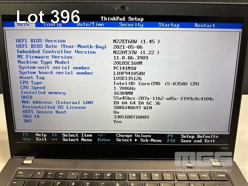 LAPTOP, LENOVO THINKPAD T480s, TYPE 20L8, CORE i5 8350U (8TH GEN) @ 1.7GHz, 16GB DDR4 RAM, 256GB NVMe M.2 SSD, 14" TOUCHSCREEN (1920x1080), INTEL HD VIDEO, Wi-Fi, BLUETOOTH, WINDOWS 11 PRO INSTALLED (NO USB-C POWER SUPPLY) (NOTE: KEYBOARD KEYS WORN) S/N:PC141M1W